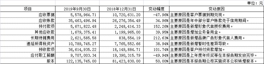 名臣健康用品股份有限公司2019年第三季度报告